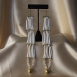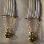 • Made from XL smooth white Dentalium shells, deer leather, bi-cone crystal beads, and brass bells. 18k gold plated hooks and findings.