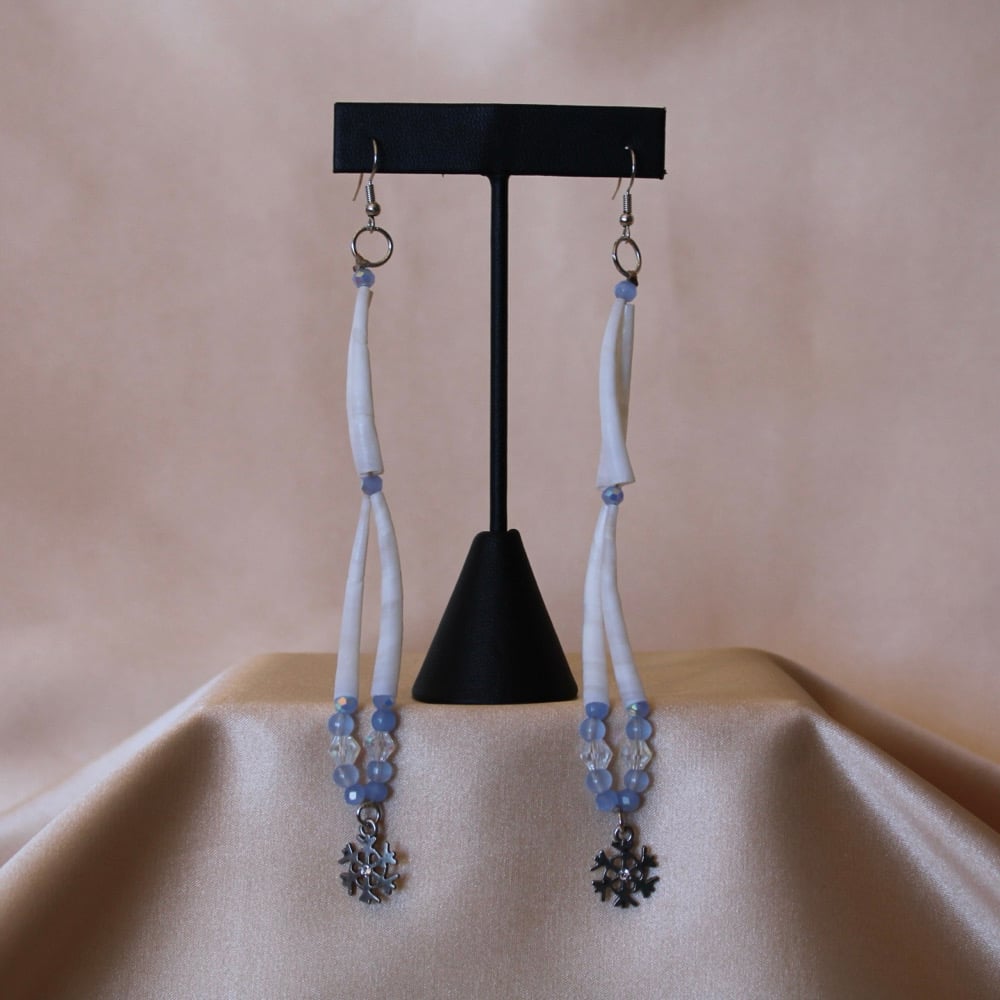 • Made from XL smooth white Dentalium shells, faceted crystal beads, and snowflake charms.