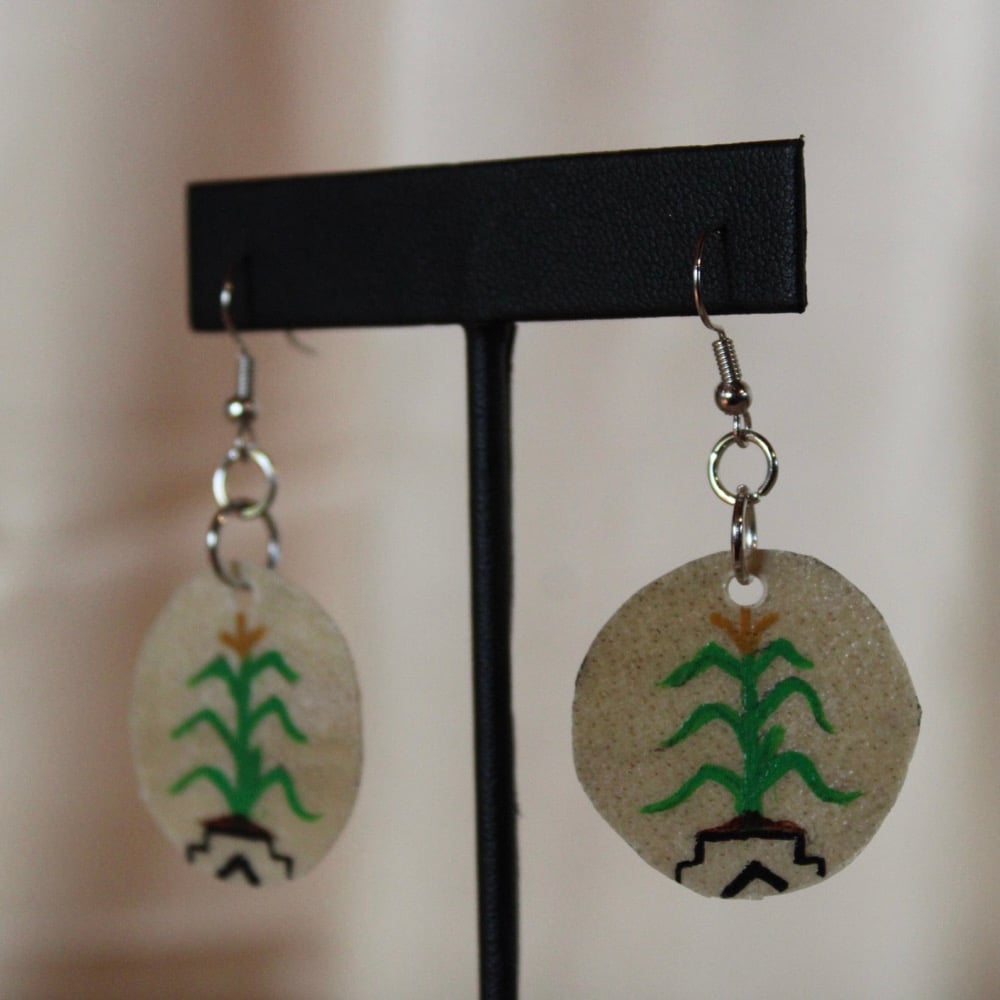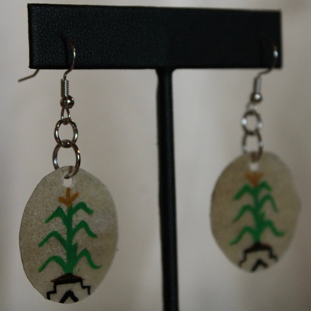• Made from parfleche (deer hide), painted with liquitex acrylic paints and sealed with fixatif.
