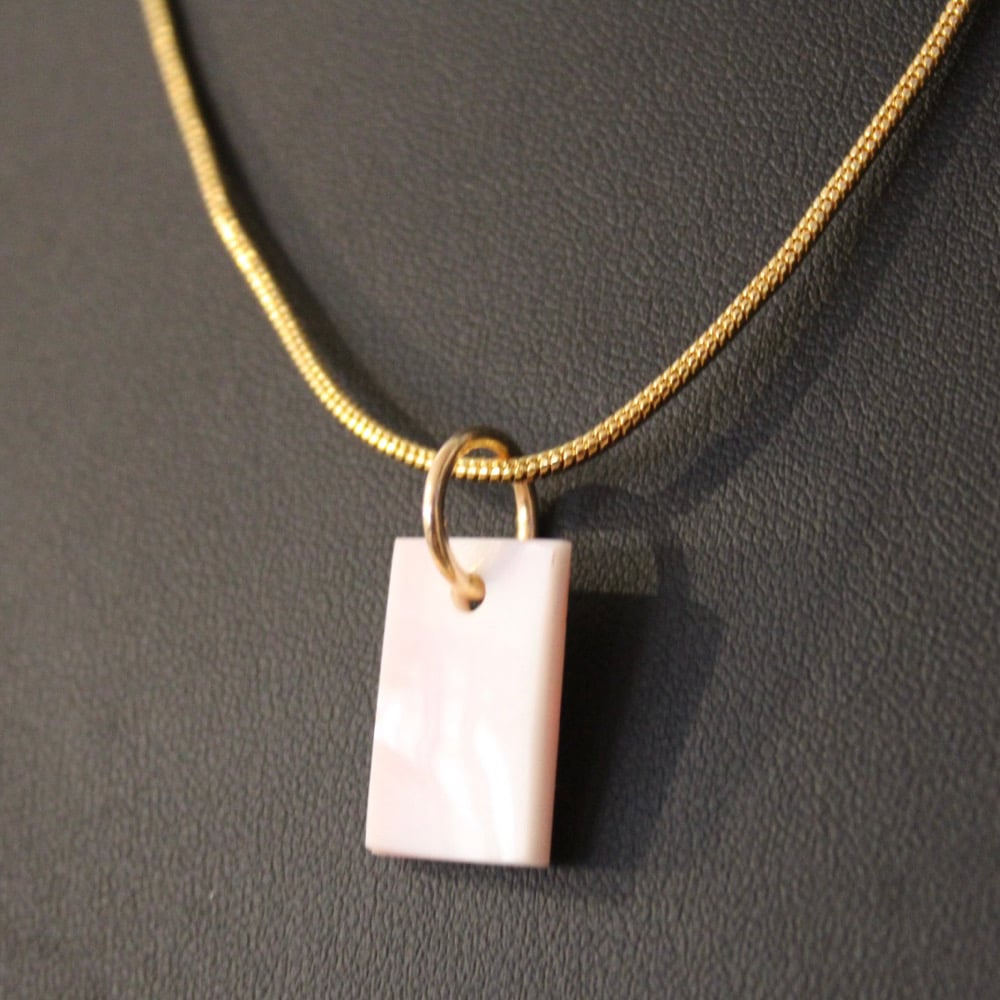 • Made from genuine pink conch shell with a 14k gold plated chain.