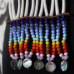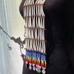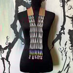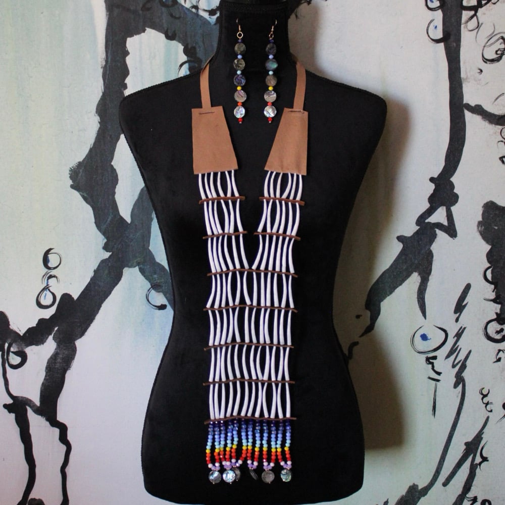 Sm Dentalium Breastplate Necklace & Earrings set (Blue & rainbow)