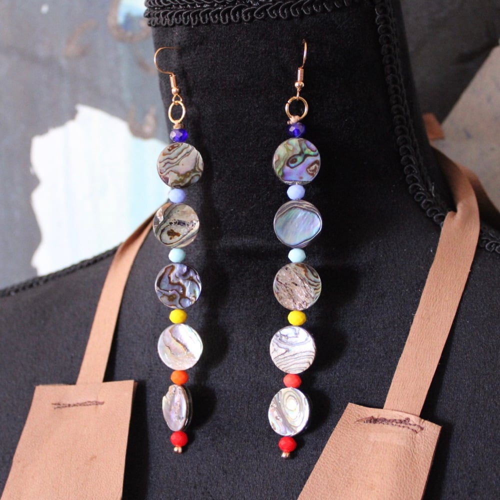 • Earrings: Made with genuine abalone shell beads, faceted glass beads, brass beads, and 18k gold plated hooks & findings.